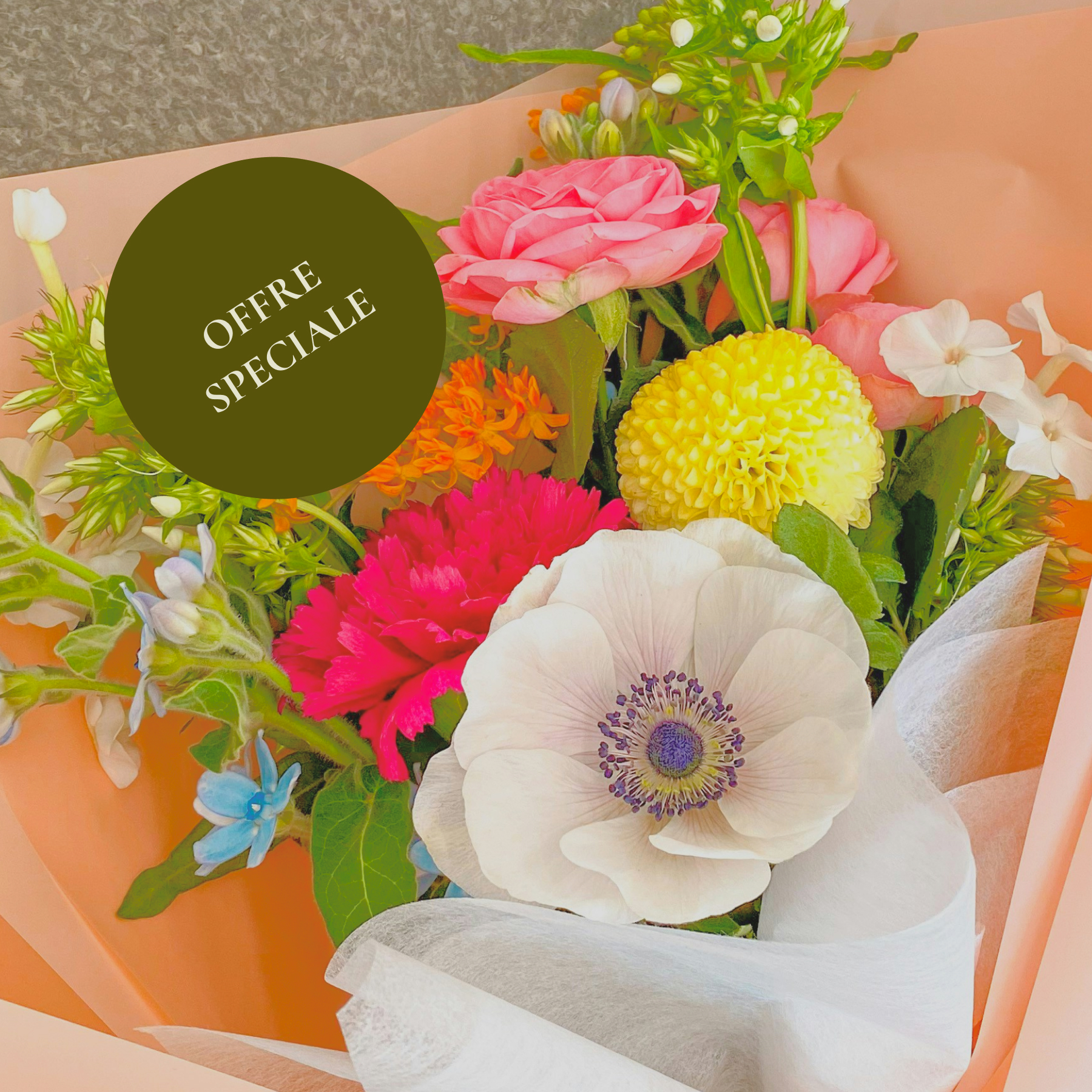 Votre fleuriste vous composera un bouquet unique et de saison selon les fleurs diponibles en magasin. Indiquez la taille et les accessoires.